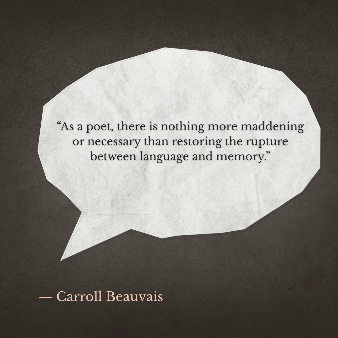 Carroll Beauvais’ poems have appeared or are forthcoming in Prairie Schooner, Mid-American Review, Wisconsin Review, Delta Poetry Review, NELLE, and elsewhere. A finalist for the Brittingham and Felix Pollack Poetry Prizes from the University of Wisconsin Press.